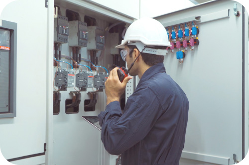 漏電、短絡、過負荷によるトラブル発生時に、現場の状況を確認し適切な処置を実施。